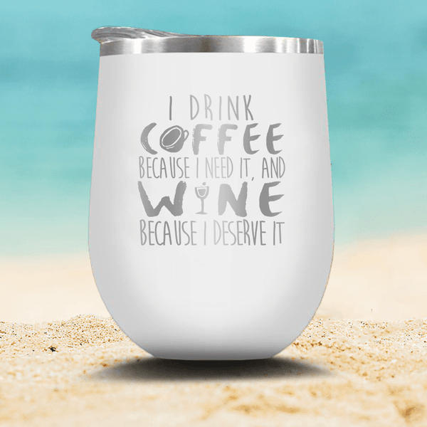 I Drink Coffee Because I Need It & Wine Because I Deserve It - Stemless Wine Glass
