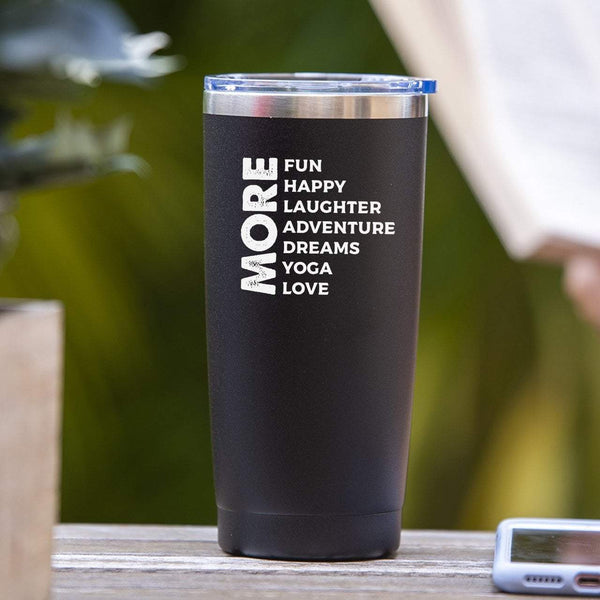 MORE Fun Happy Laughter Adventure Dreams Yoga Love - Tumbler